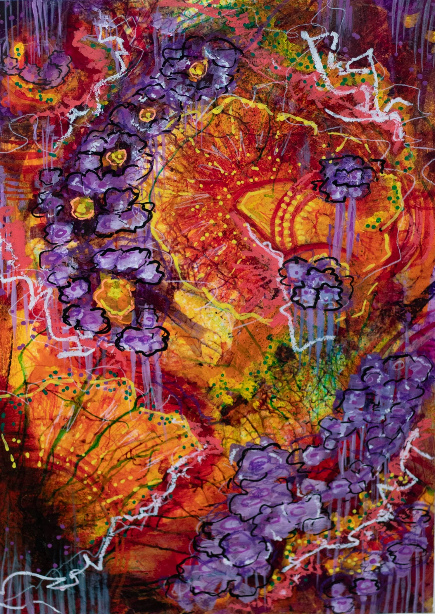Many of the abstract pieces I did intuitively allowing the universe or my subconscious to channel through me, allowing the piece to “paint itself”.