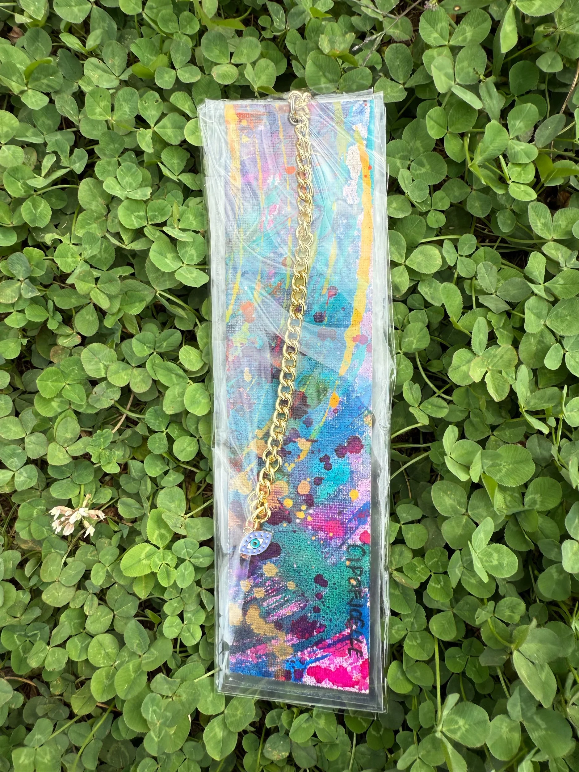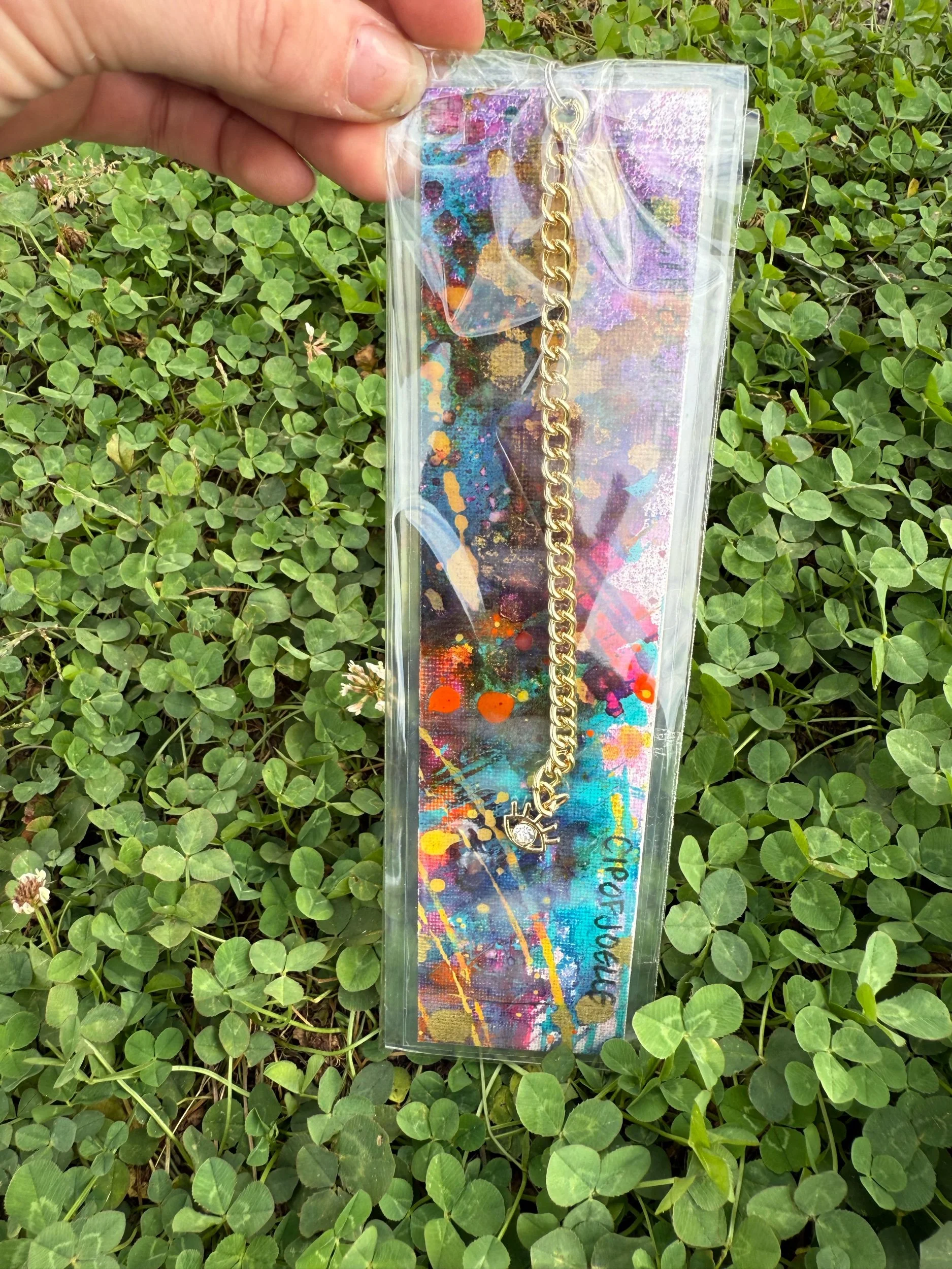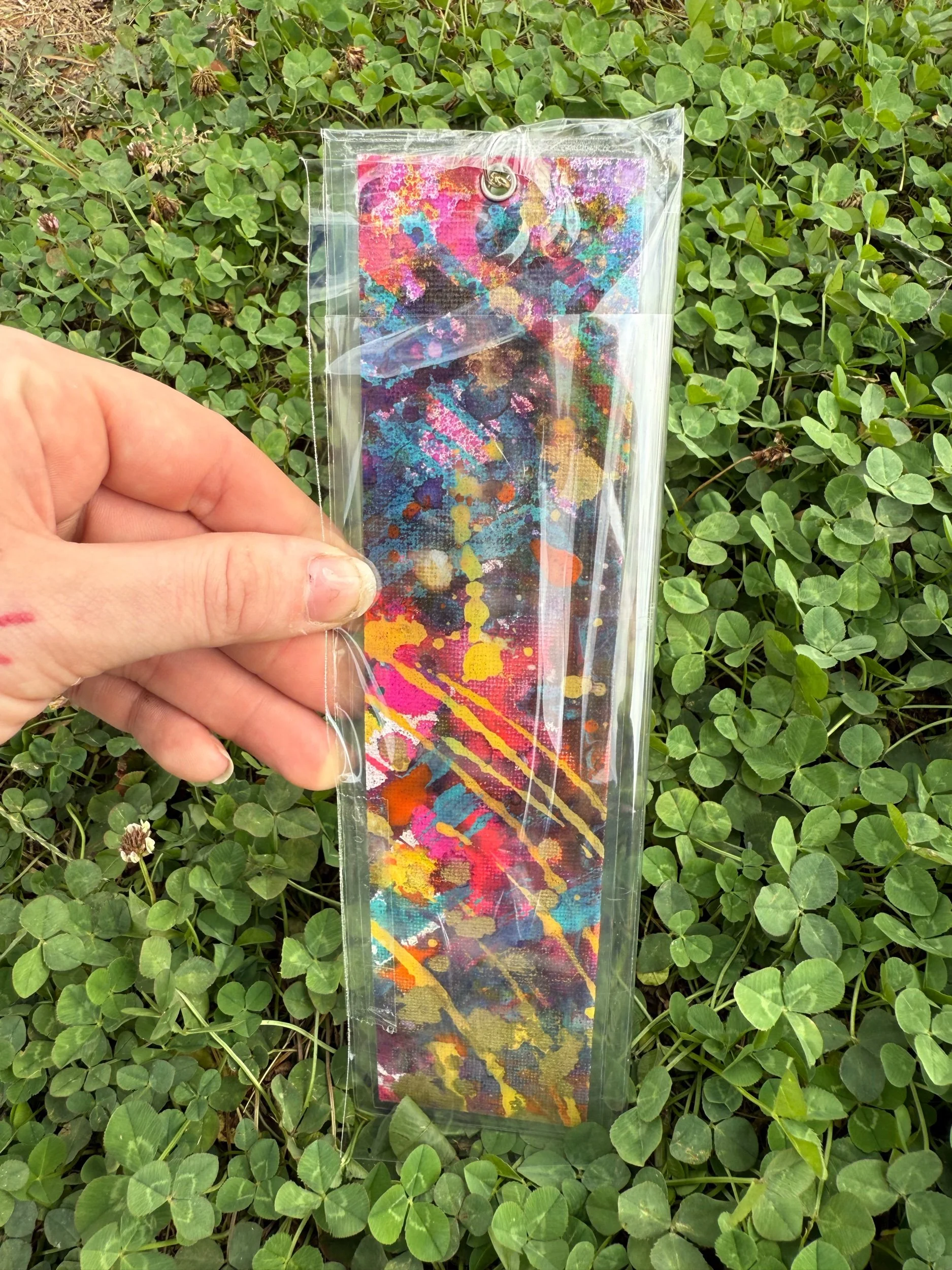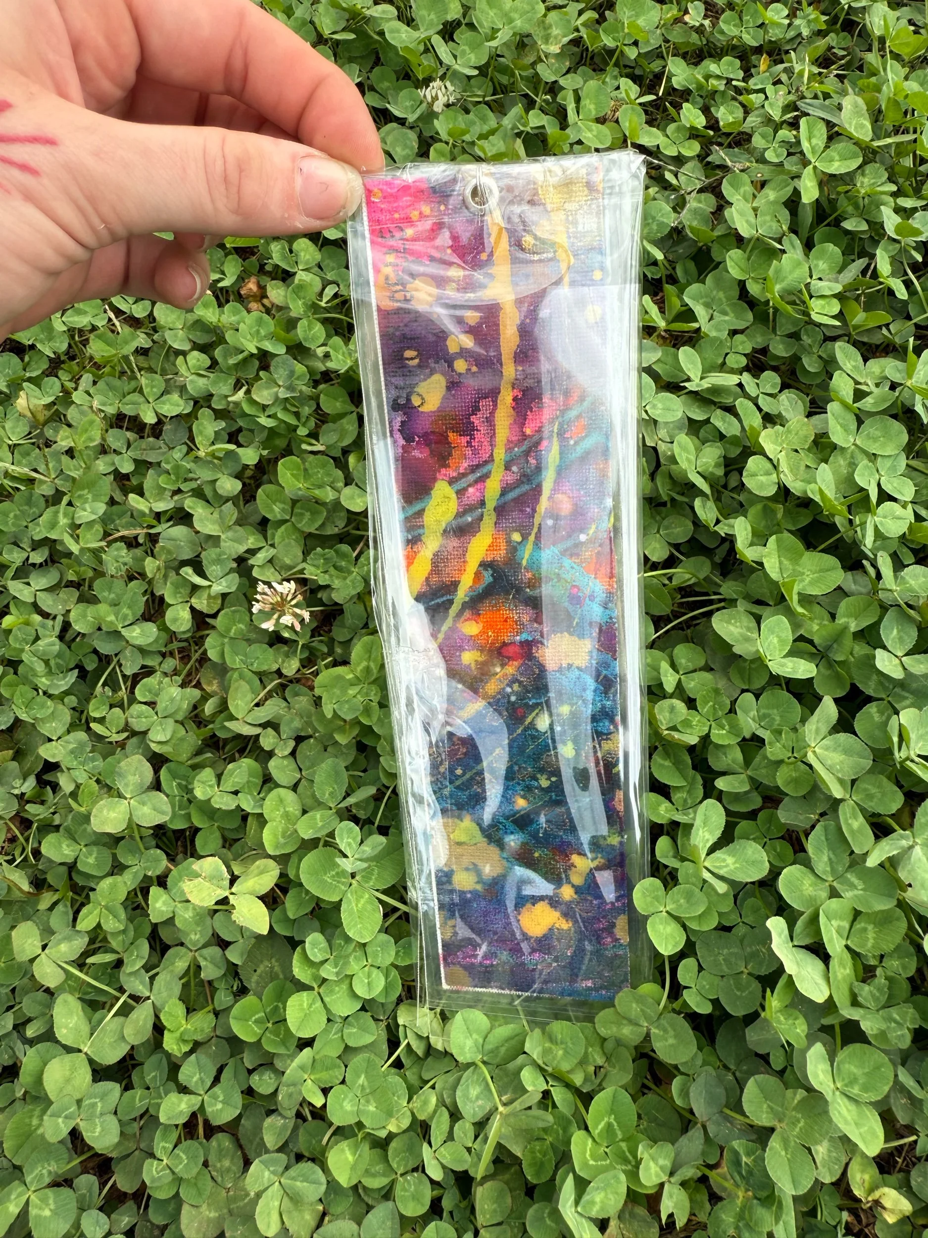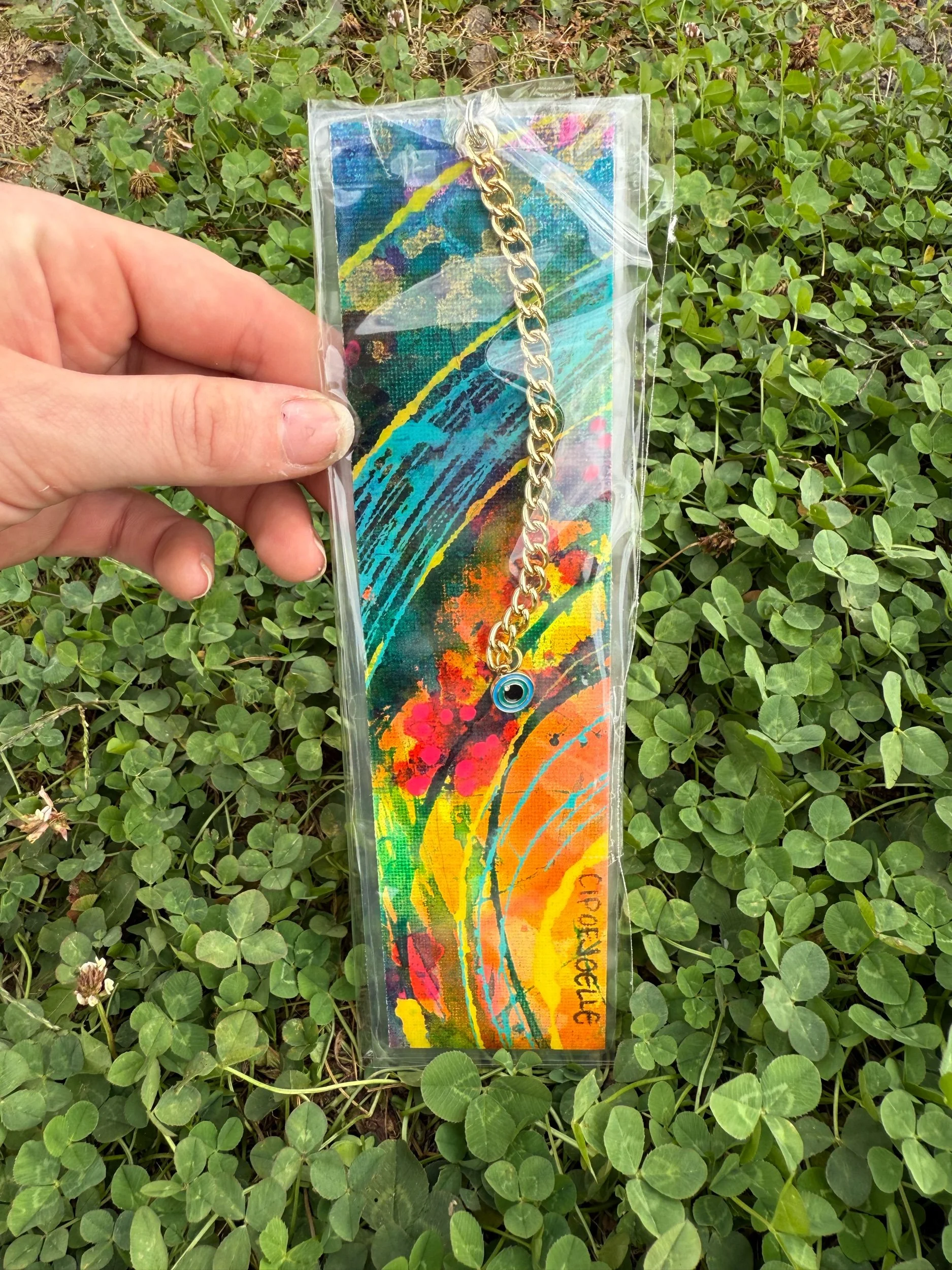1/1 Original Canvas Painting Bookmark, Hand made, Laminated, with charm