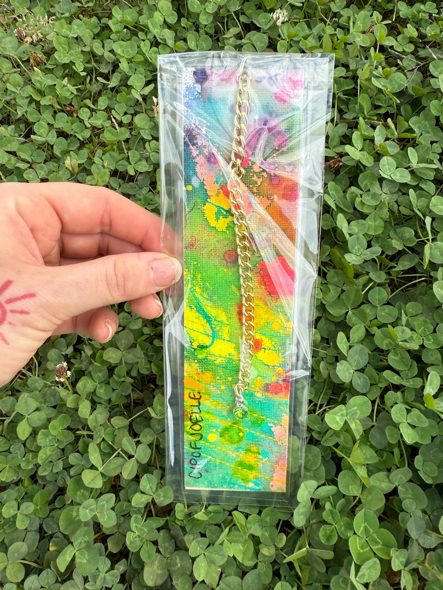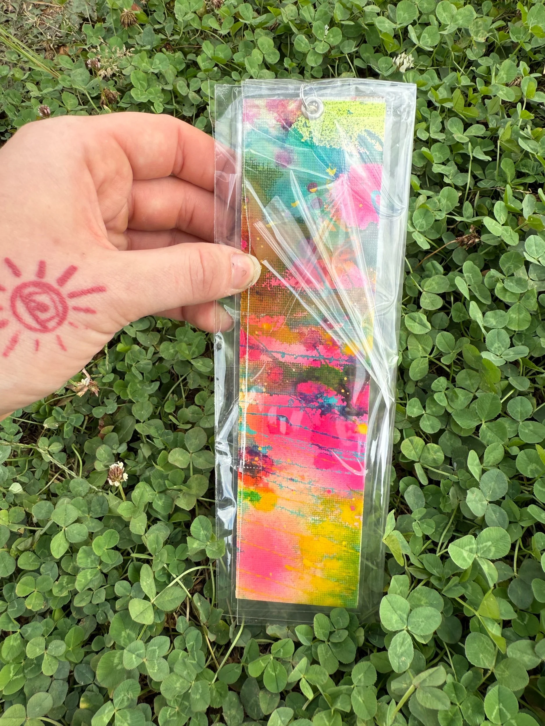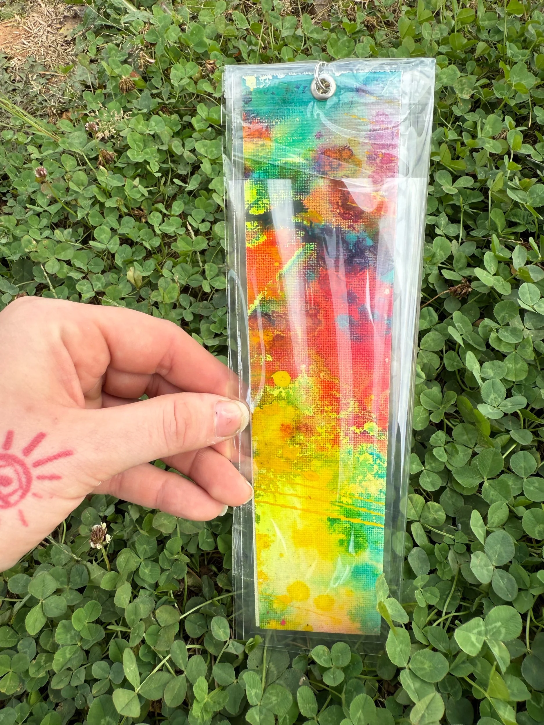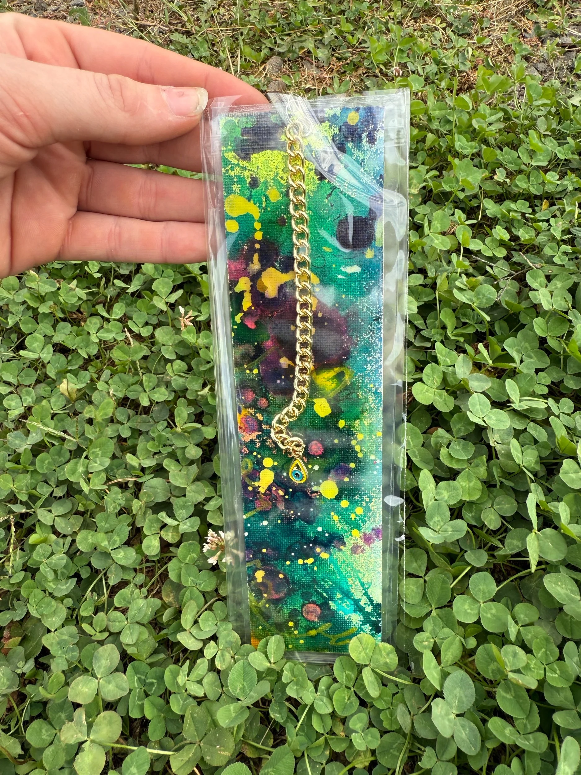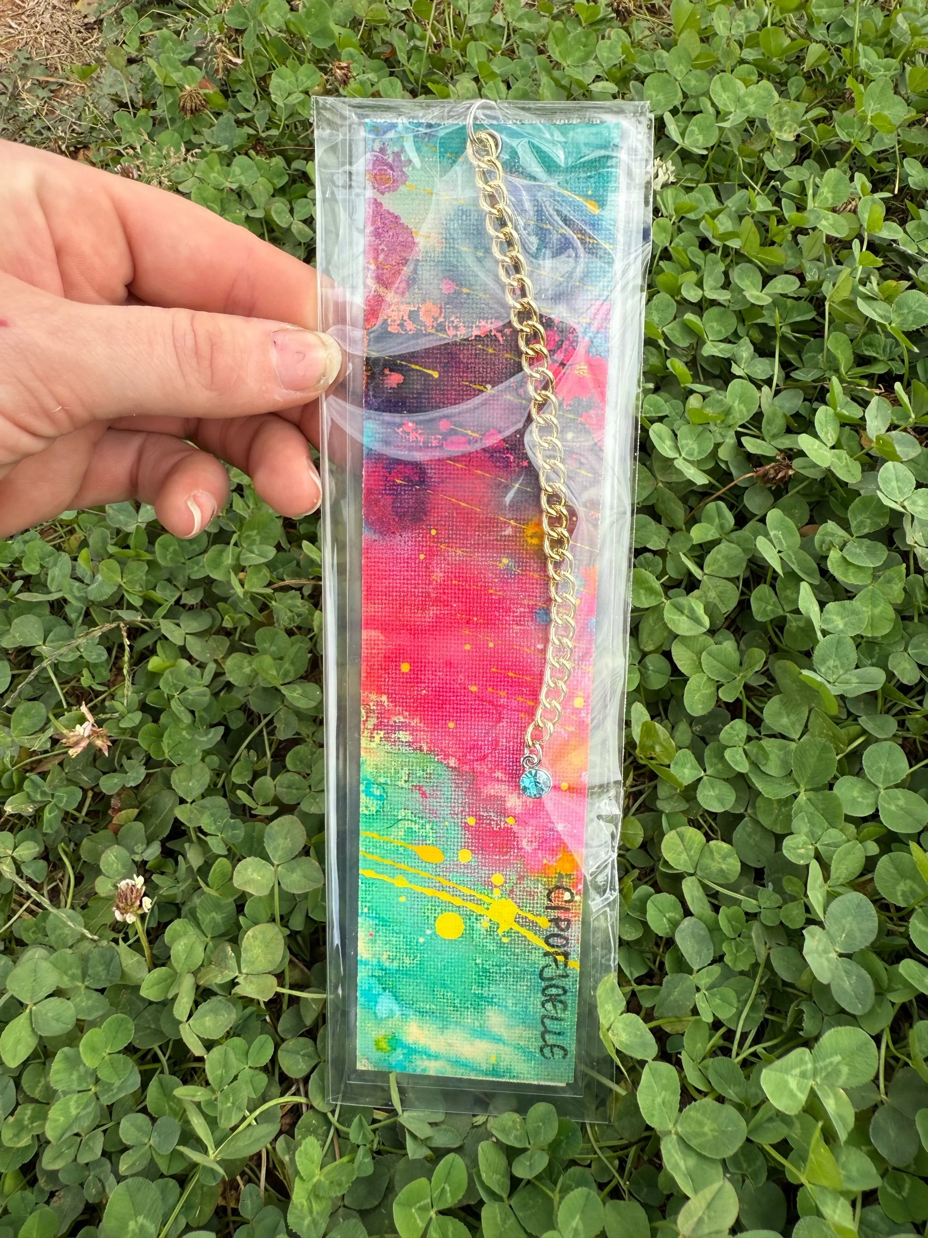 1/1 Original Canvas Painting Bookmark, Hand made, Laminated, with charm