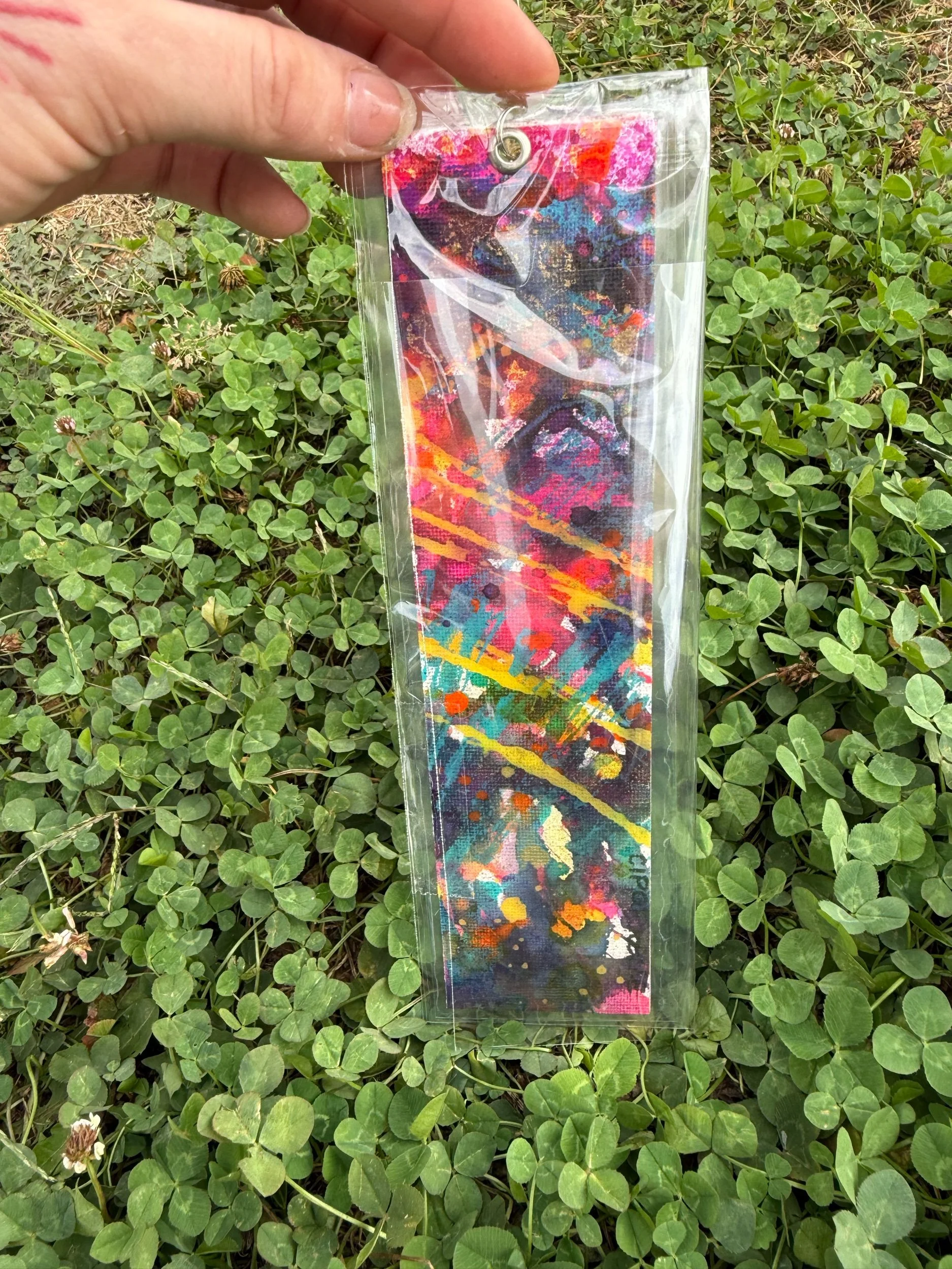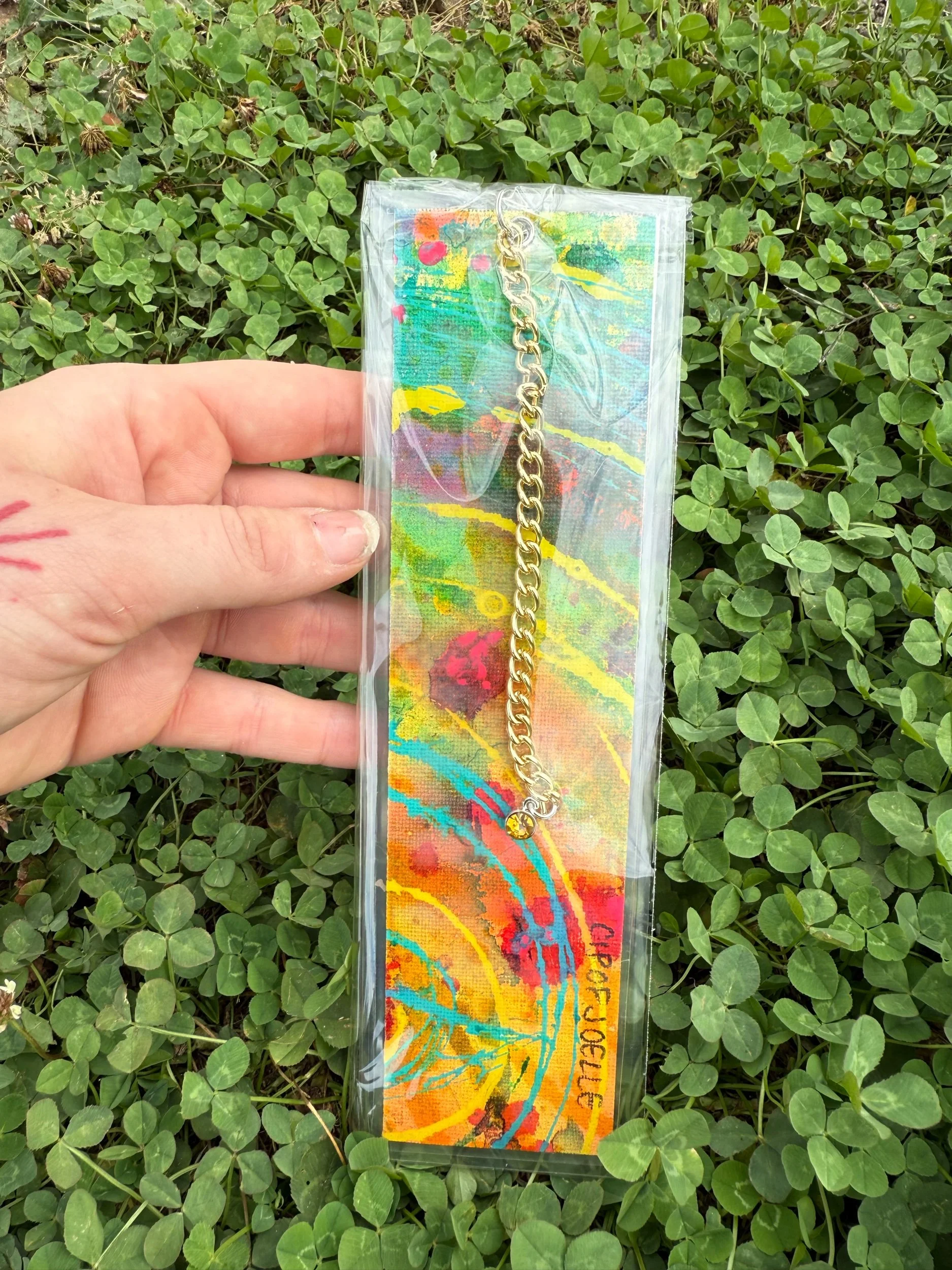 1/1 Original Canvas Painting Bookmark, Hand made, Laminated, with charm