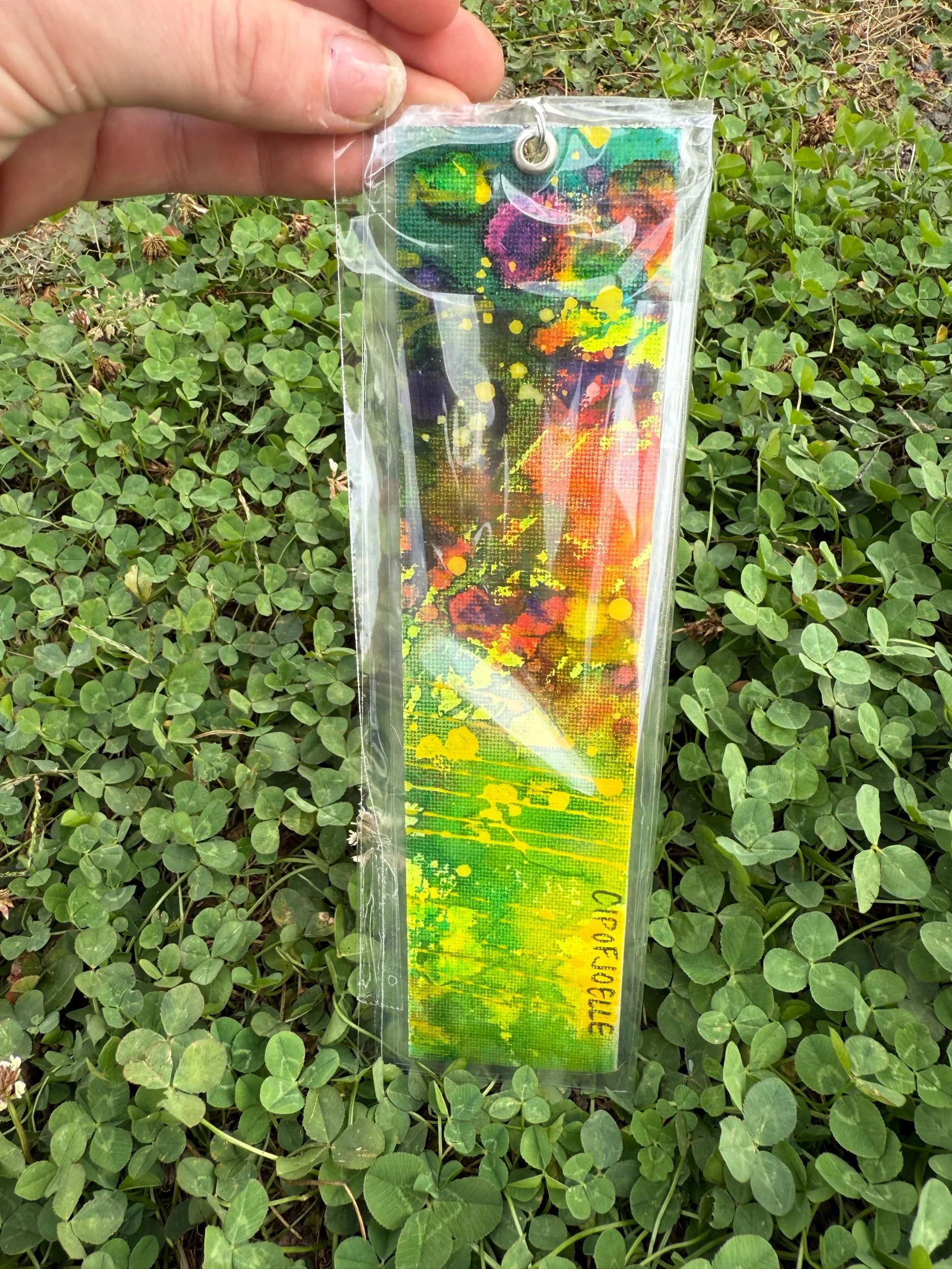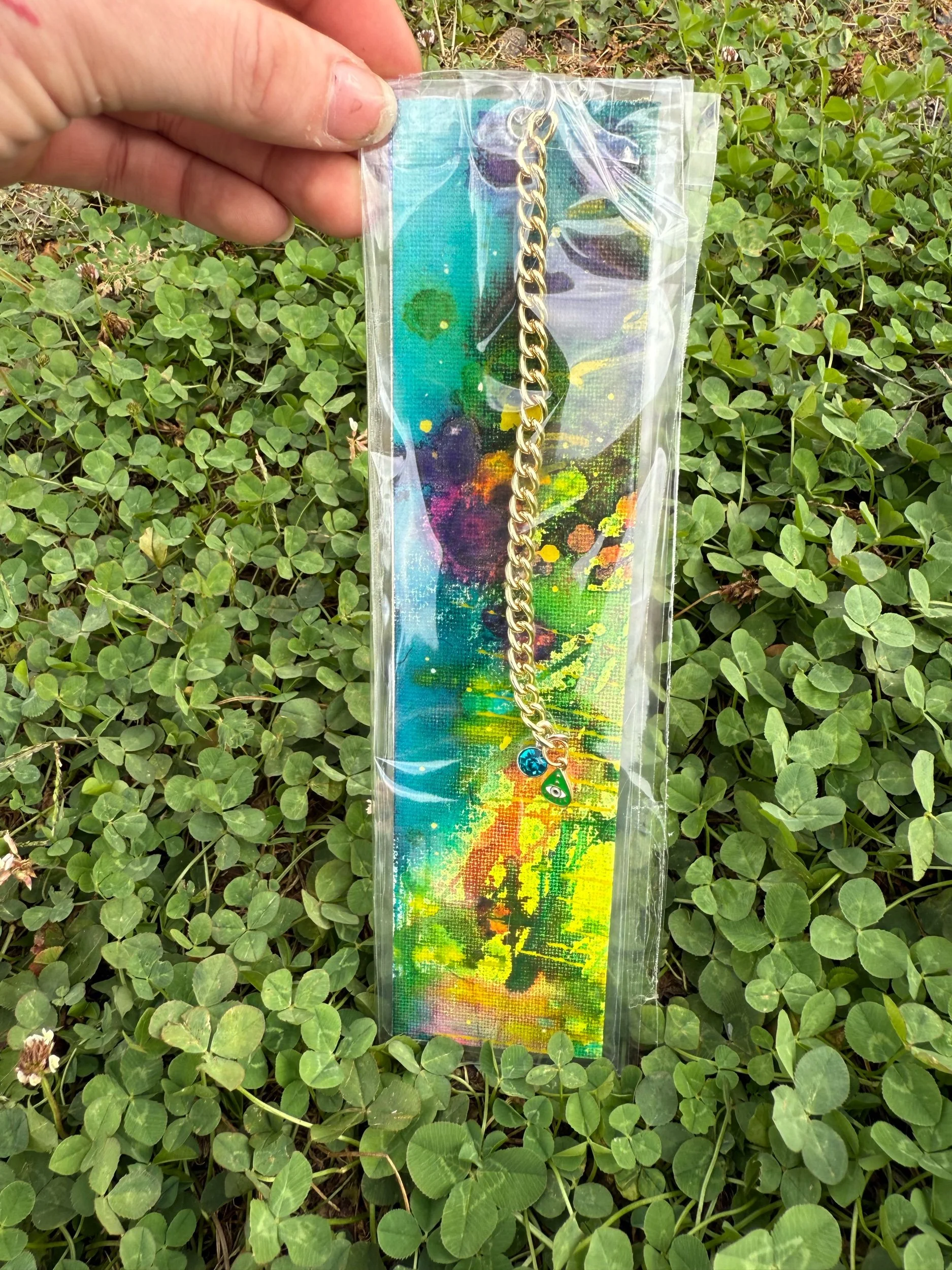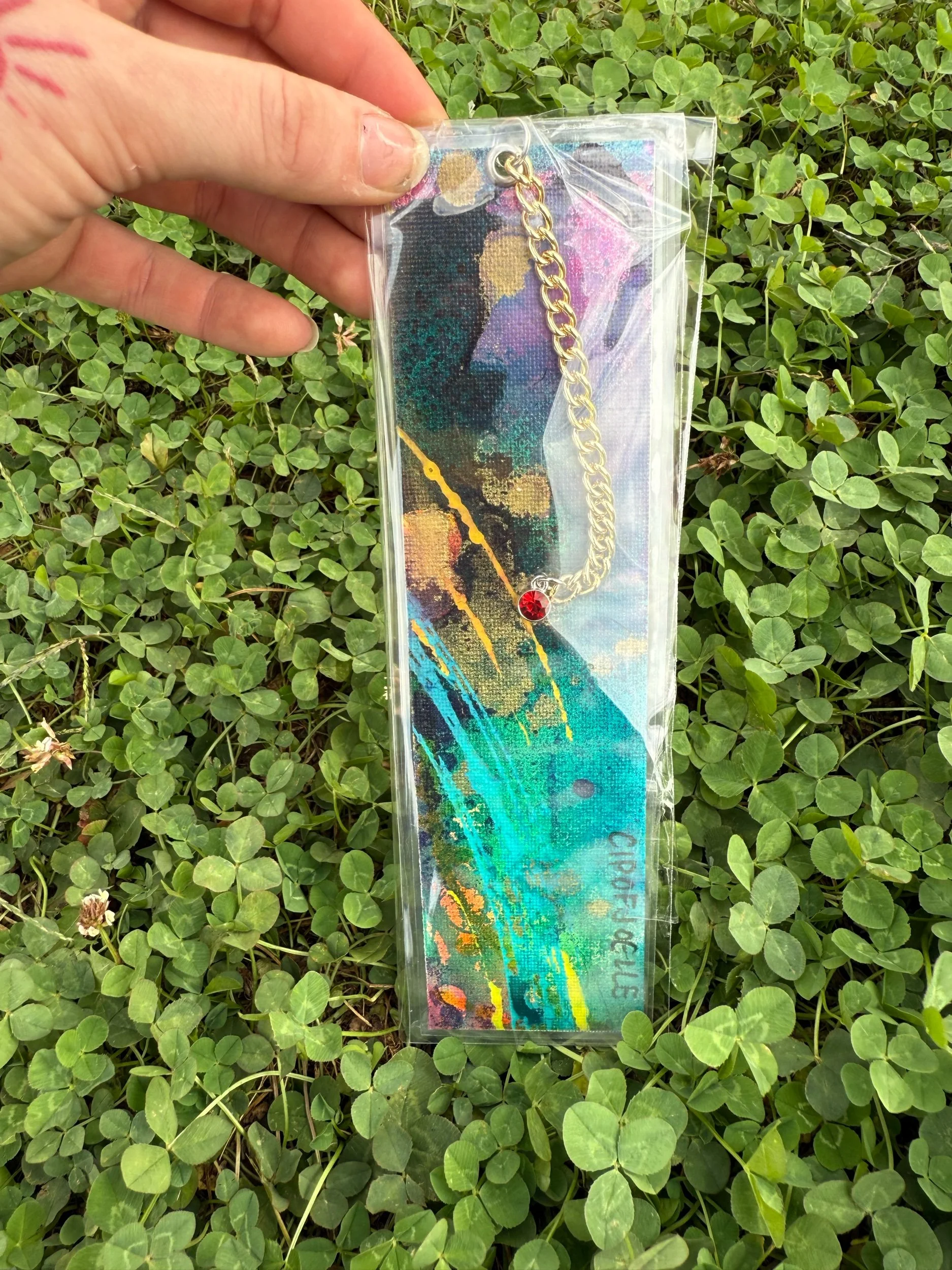 1/1 Original Canvas Painting Bookmark, Hand made, Laminated, with charm
