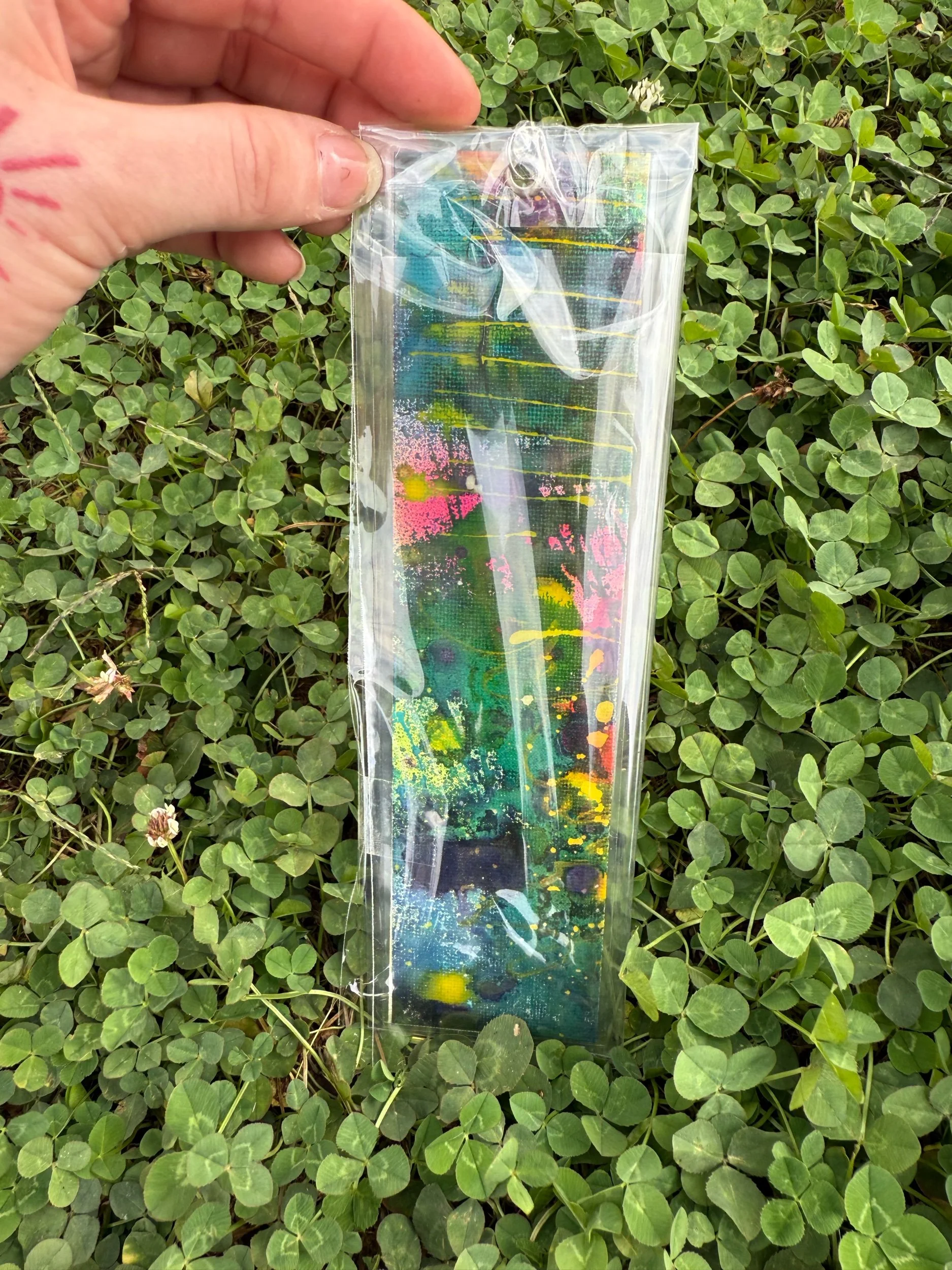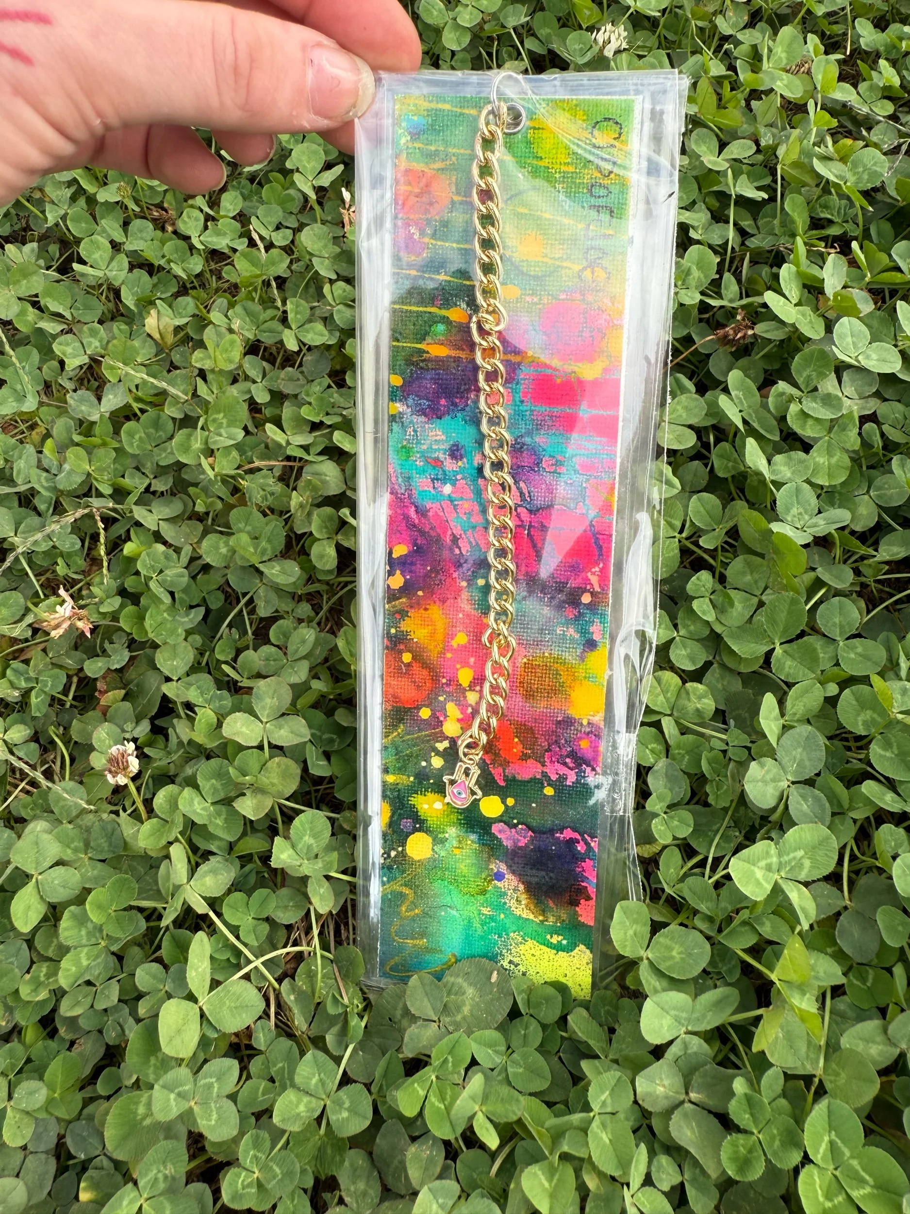 1/1 Original Canvas Painting Bookmark, Hand made, Laminated, with charm